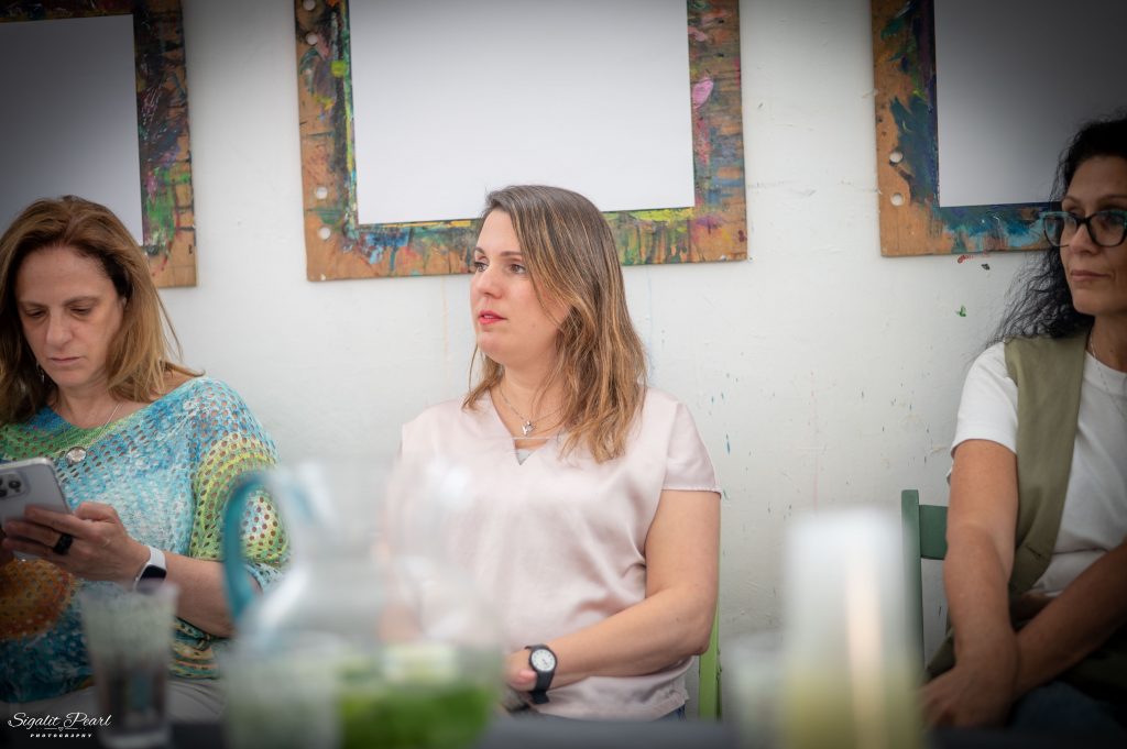(הצלמת סיגלית פרל תפסה אותי מקשיבה לתמר ארבל אלישע בקשב רב)