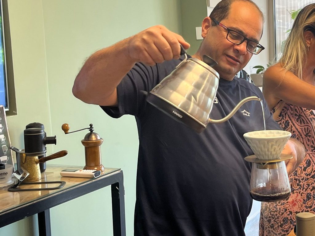 לגמנו כמה סוגי קפה, ושמענו הסברים מרתקים. את הסדנא העביר לנו רוי בן אשר, והיא התקיימה באורקה– מתחם חדש, המארח סדנאות ייחודיות.