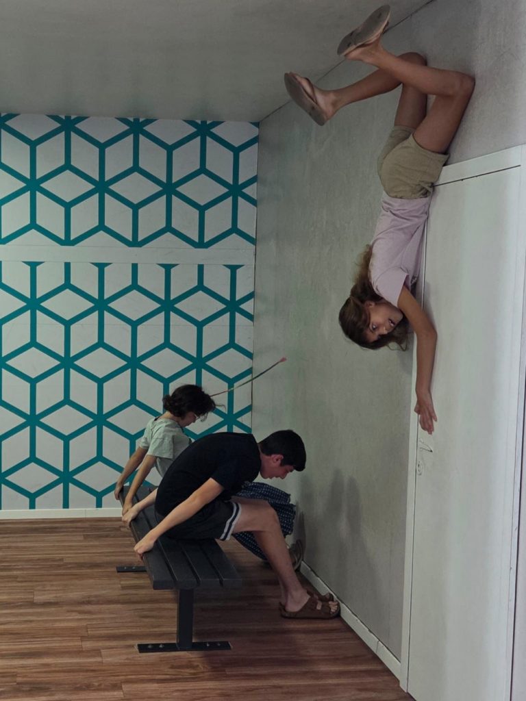 המוזיאון הוא חגיגה של אשליות מכל הסוגים: חדרים מתהפכים, מראות שמעוותות אותך, הולוגרמות שמשתנות מול העיניים ואשליות אינסופיות. הילדים התרוצצו בין המיצגים, ניסו להבין “איך זה עובד” וצחקו כשגילו את הטריקים מאחורי כל אשליה. גם אנחנו, ההורים, מצאנו את עצמנו משתפים פעולה, מצלמים בלי הפסקה ומגלים מחדש את חדוות הסקרנות.